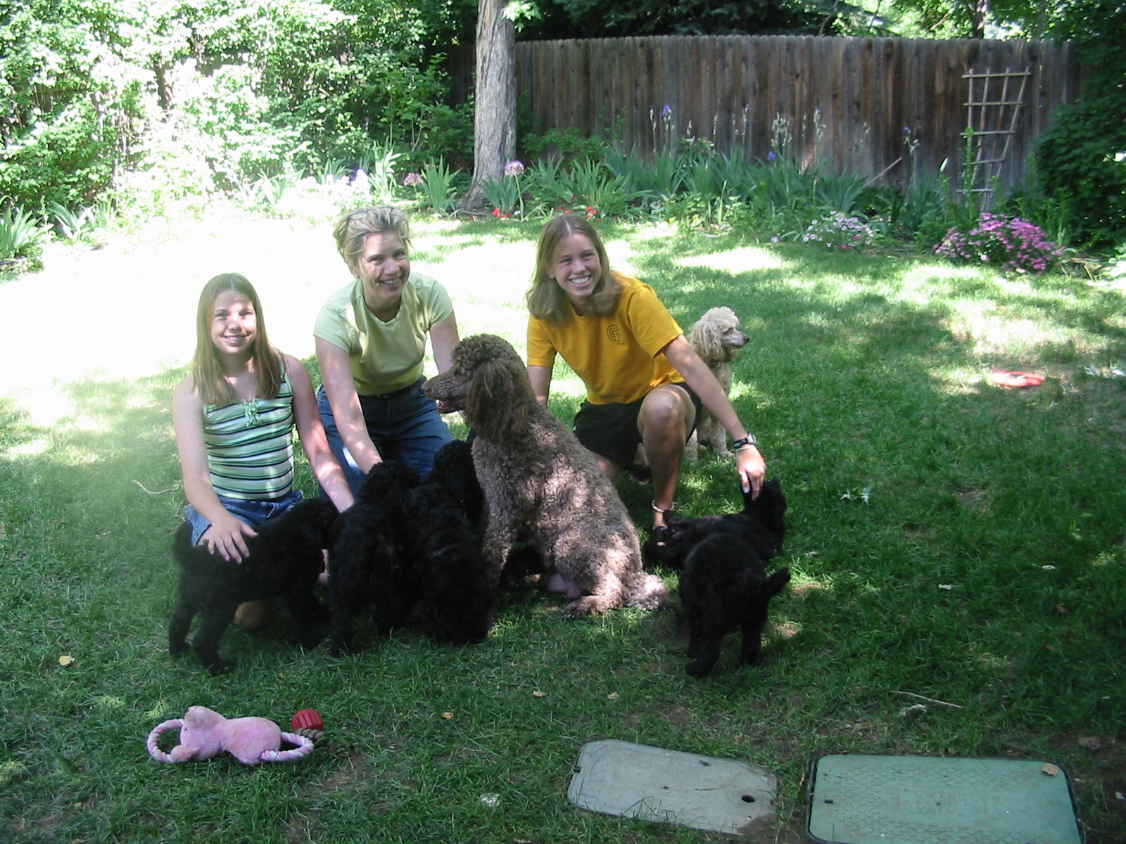 three girls, pups, hersh and bobby